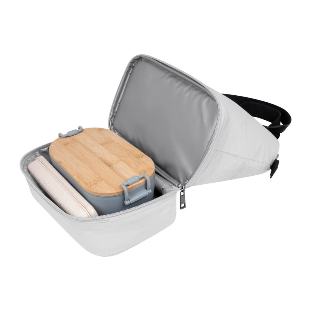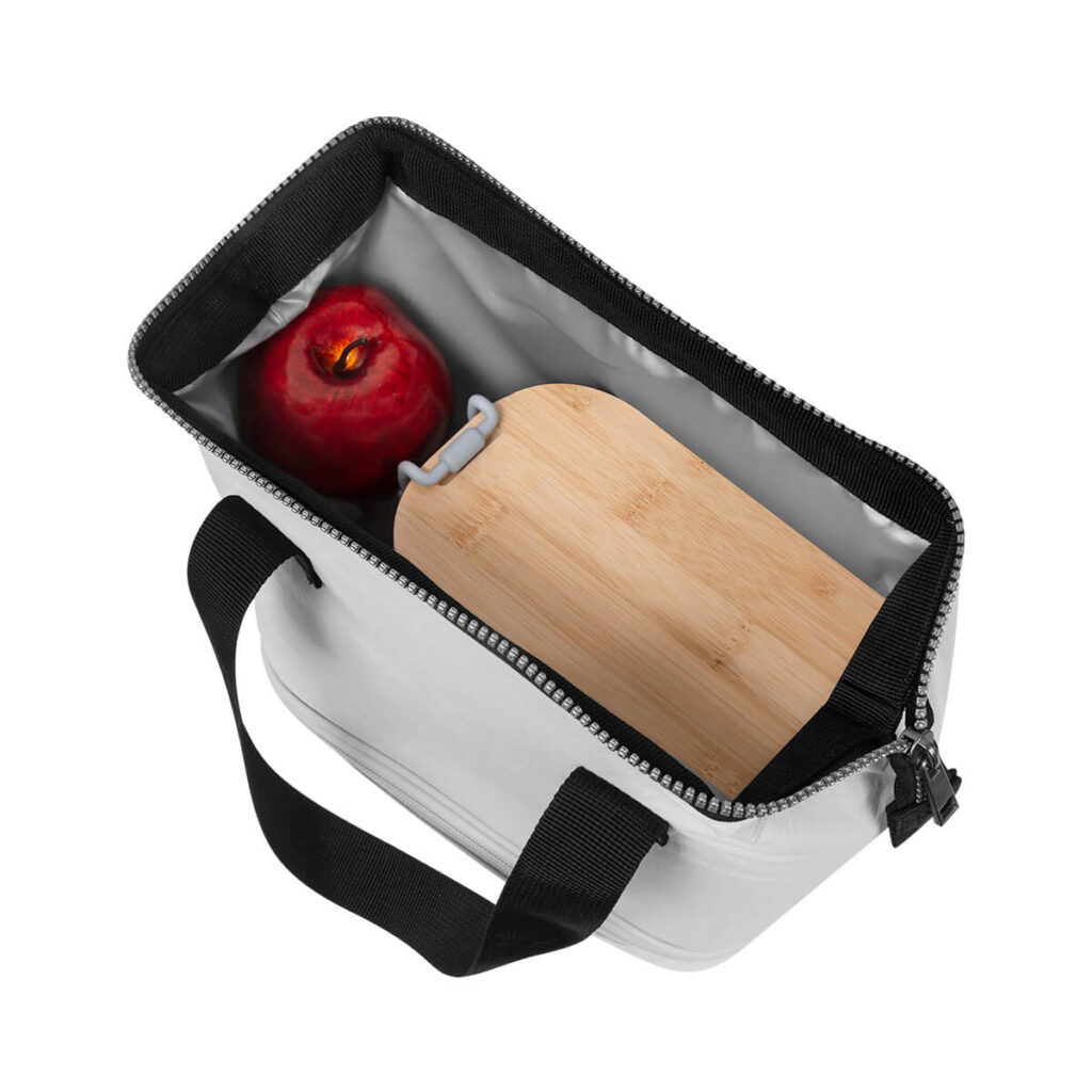 Lonchera con interior plastificado y marco interno metálico que le da mayor soporte y estabilidad. Compartimento inferior plastificado, ideal para almacenar cubiertos o alimentos compactos. Cuenta con un asa de mano de tela para transportar fácilmente. Perfecta para mantener los alimentos organizados y frescos. Capacidad 6 latas.