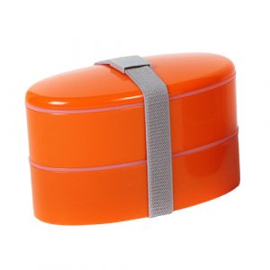 Con 2 compartimentos, banda sujetador de tapa y cubiertos (cuchara, tenedor y cuchillo).