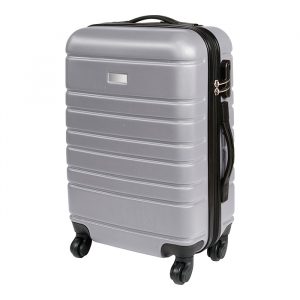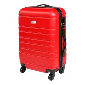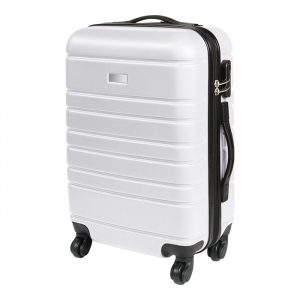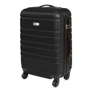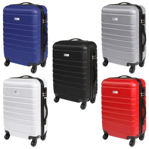 Maleta rígida de viaje con exterior fabricado en abs e interiores en poliéster, con mango retráctil, chapa de seguridad y placa metálica.