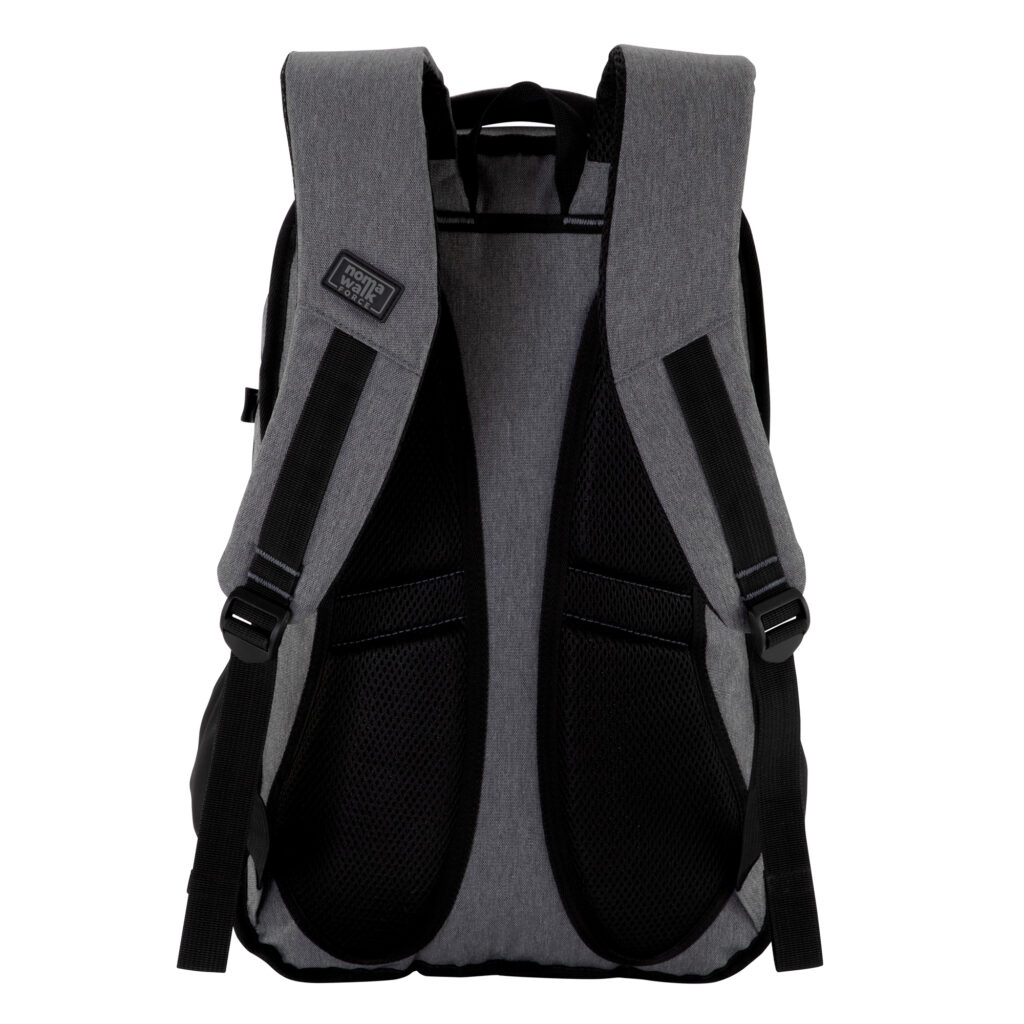 Mochila urbana porta notebook de hasta 16 pulgadas. Compartimento principal con cierre, interior con 2 bolsillos, bolsillo porta notebook acolchado y elástico de seguridad y bolsillo porta tablet de hasta 11 pulgadas. Compartimento frontal con cierre, exterior con cierre horizontal, interior con bolsillos organizadores. 2 bolsillos laterales de tela elastizada color negro. 2 correas de hebillas ajustables al volumen que se traslade. Asa acolchada y reforzada. Espalda acolchada con red que permite ventilación. Tiradores de cierre metálicos.