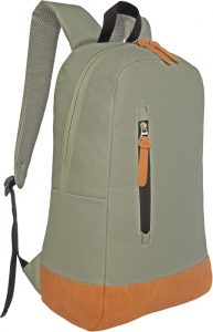 Capacidad 16 litros aprox. Fabricada en polyester 600D y PU. Mochila con bolsillo frontal de apertura vertical en la parte externa y cierre con detalles en PU. Dos correas ajustables y acolchonadas. Parte trasera acolchonada. En la parte inferior detalles de material PU en color marrón.