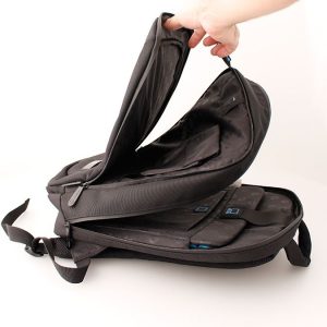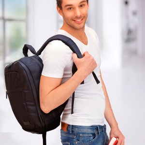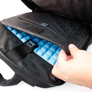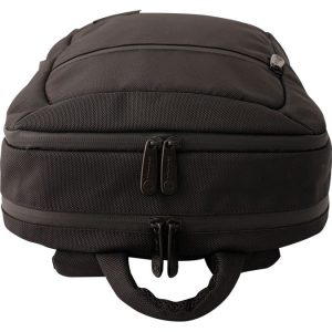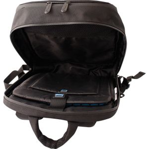 Poliéster de alta resistencia. Negra con detalles azules. Cierres exteriores que sellan para evitar la entrada de agua y polvo. Bolsas principales con apertura 180°. Compartimentos para tarjetas bolígrafos llaves USB baterías y cables. Bolsa Principal con espacio para Lap Top y Tablet. Full Padding que asegura tu equipo desde cualquier ángulo. El grabado láser se coloca en una placa metálica en la parte frontal. Tira cierres con marca presente. Asas acolchadas.