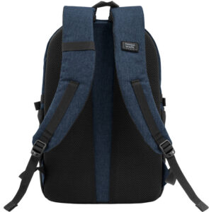 Mochila portanotebook. Compartimento principal con cierre. Interior forrado impreso con logo Nomawalk, con división acolchada porta notebook de hasta 16 pulgadas y bolsillo de red con cierre. Bolsillo frontal horizontal con cierre y dos bolsillos de lycra laterales porta botellas y accesorios, con cintas de amarre. Correas regulables y espalda con red para ventilación, ambas acolchadas. Cierres metálicos con tiradores de cordón.