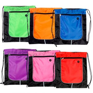 Fabricado en poliéster con jareta, cierre al frente y salida para audífonos. Disponible en colores azul, naranja, morado, rojo, rosa y verde.