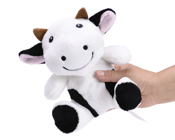 Muñeco de peluche en forma de vaca. Cuenta con playera a color para impresión del logotipo. (Playera se vende por separado).