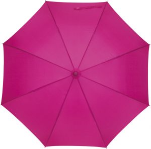 Varillas en fibra de vidrio, puntas metálicas y mango curvo de plástico. Tiene un mecanismo de apertura de botón. Con cierre de velcro.