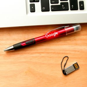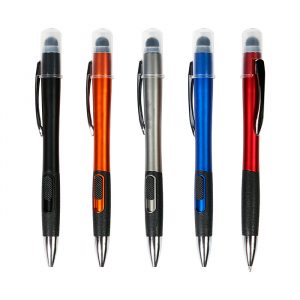 Bolígrafo retráctil fabricado en plástico con luz interior del color del barril, puntero touch y tinta de escritura negra.