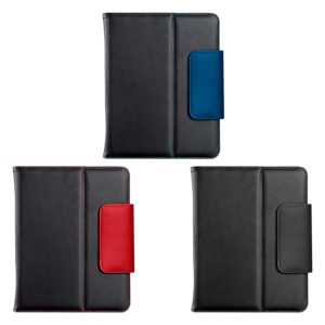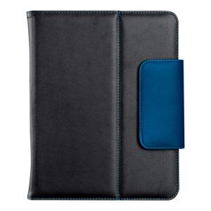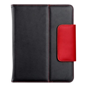 Porta tablet con bandas ajustables, cubierta de poliuretano, interior de terciopelo y poliuretano.