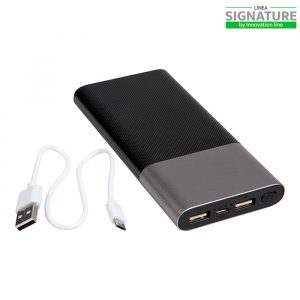 Power bank rectangular fabricado en aluminio de carga doble, 10,000 mah, incluye cable tipo pulpo con 3 salidas para diferentes dispositivos (ios y android).