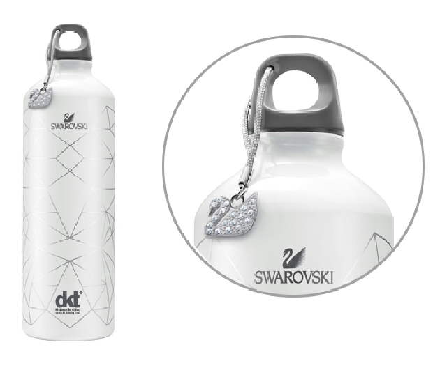 *Water Bottle With Swan Charm ** Swarovski White Collection. Cristal y aluminio