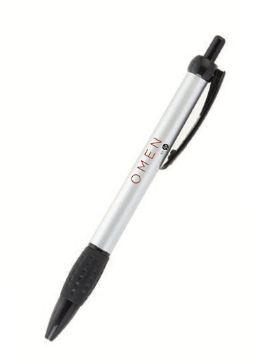 *Bolígrafo de plástico con goma antideslizante. Mecanismo de clic.