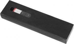 Controlador de diapositivas con apuntador láser. Transmisor USB para conexión remota que se guarda/oculta en uno de los extremos de forma imantada. Botones engomados con indicadores de avance, retroceso y láser. Botón on/off. Incluye una pila AAA no incorporada en el producto para evitar que se sulfate.