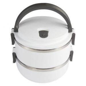 Incluye dos recipientes para alimentos. Compartimiento superior para líquidos e inferior para sólidos. Con agarradera doble, válvula de silicón y broches sujetadores.