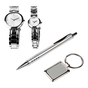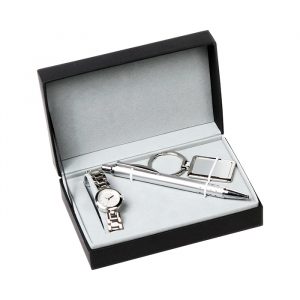 Set de juego con reloj, llavero y bolígrafo tinta negro. incluye caja de lujo. disponible para dama y caballero.