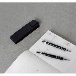 Bolígrafo y lapicera 0.5 mm. Mecanismo pulsador. Incluye estuche con imán para cerrado.