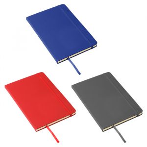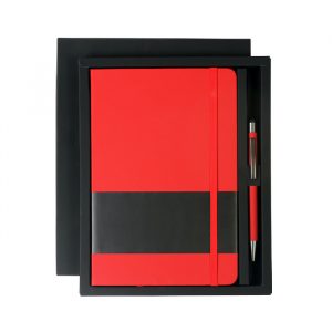 Set de libreta fabricada en PU con bolígrafo terminado rubber y puntero touch, tinta de escritura negra. Incluye cintillo negro removible.