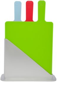 Set de tres tablas para picar, una para cada alimento, con una base para poner las tablas y mantenerlas ordenadas.