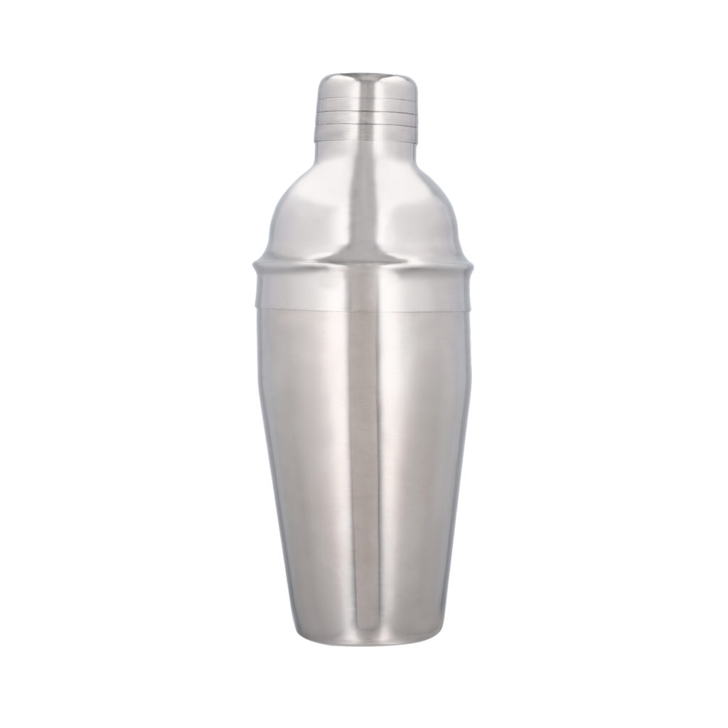 Shaker de acero inoxidable y tapa metálica de cierre a presión con coladera.