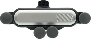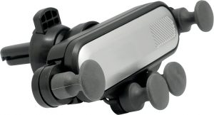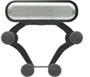 Soporte de celular, cuenta con un botón que permite engancharse en la rejilla del aire acondicionado del auto