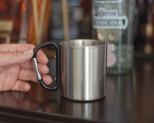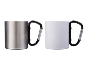 Taza de doble pared de acero inoxidable para sublimación, con asa de gancho para colgar. CAP. 220 ml.