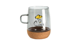 Taza de vidrio de borosilicato con base desprendible de corcho, fabricado en materiales de grado alimenticio, apto para microondas (sin base de corcho). Capacidad de 473 ml. Incluye caja de cartón individual.