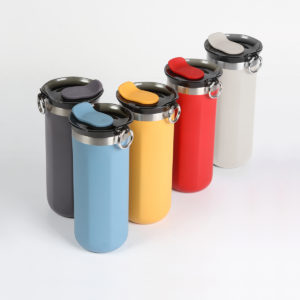 Termo de acero inoxidable con tapa fabricada en plástico ABS y silicona con aro metálico. Su tapa de silicóna anti fugas brinda mayor seguridad al transportar tu bebida y  su aro metálico permite colgar el termo de cualquier bolsa o mochila. Cabe en la mayoría de los portavasos de coche