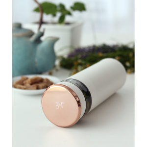 Termo para infusiones, de acero inoxidable doble pared con display de temperatura en la tapa.