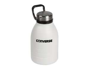 Termo jumbo de acero inoxidable doble pared con doble tapa de seguridad, tapa interior fabricada en ABS, popote plástico flexible y tapa exterior de acero inoxidable.