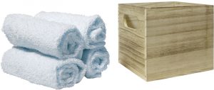Set de 4 toallas de mano en caja de madera.